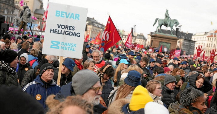 Milaka danimarkarrek bete zuten atzo Parlamentuaren kanpoaldea Kopenhagen. Gastu militarra finantzatzeko Gobernuak jaiegun bat kentzea proposatu izanaren aurka protestatu zuten. Oposizio osoa, sindikatuak, Eliza luteranoa -erlijio-festa bat gutxiago izango litzateke- eta biztanleen zati handi bat zutik jarri ditu Exekutiboaren proposamenak. Alternatibaren inguruan, ordea, ez dago halako adostasunik. Edonola ere, gertutik jarraitu beharreko borroka da, ideia txarrak azkar hedatzen baitira; eta gastu militarra finantzatzeko badira, areago.
