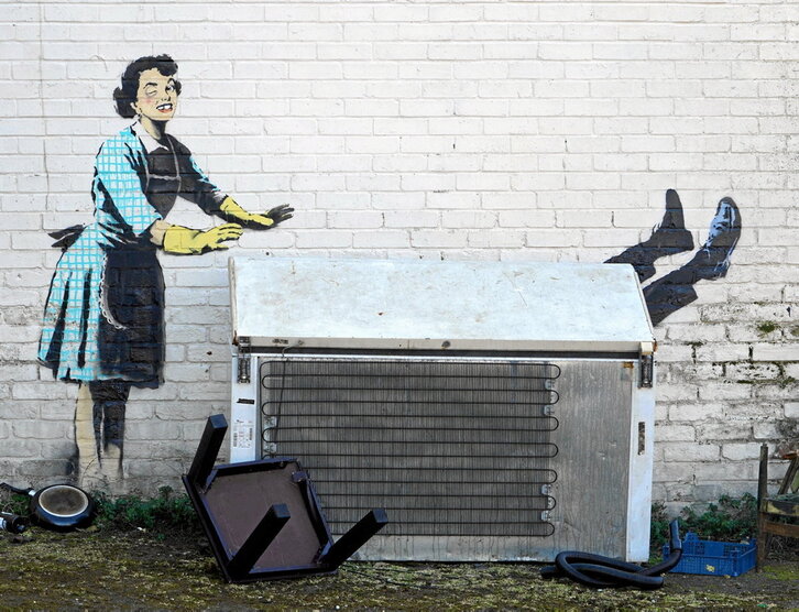 Otsailaren 14a San Valentin edo «maiteminduen eguna» dela diote zenbait egutegik. Banksy grafitigile ingelesak berea duen satira erabiliz kritika egin zion egunari. Ingalaterrako Margate herrian agertu zen atzo horma-irudia. Hozkailu zahar bat zegoen kalean, eta trastea baliatuz Banksyk margoa egin zuen horman. 1950eko hamarkadako etxeko langile bat ageri da, hozkailu barrura gizonezko bat bultzatzen, begi keinua egiten dion bitartean begira dagoen herritarrari. Maitasun erromantikoaren bihotzetatik harago, bestelako irudi bat jarri zion egunari artistak.