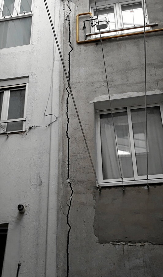 Donostiako Metroaren eraikuntza lanek Zubieta kaleko 1-E zenbakiko eraikinean eragindako ezegonkortze estrukturalaren larritasuna salatu zuen atzo Satorralaia bizilagunen mugimenduak. Aldameneko argazkian ikus daiteke obrek etxebizitzan eragindako arrakala handia. Ez da metroaren lanek alderdi horretan eragin duten lehen ezbeharra. 2020ko ekainean lur-jausi bat gertatu zen 8. zenbakiko sotoan; urte bereko azaroan, bi metro inguruko diametroa zuen zulo bat sortu zen galtzadan, eta beste zulo bat agertu zen hilabete batzuk geroago, 2021eko maiatzean. Arriskuen gainetik, lanek aurrera jarraitzen dute inork behar ez duen metro zati batekin.