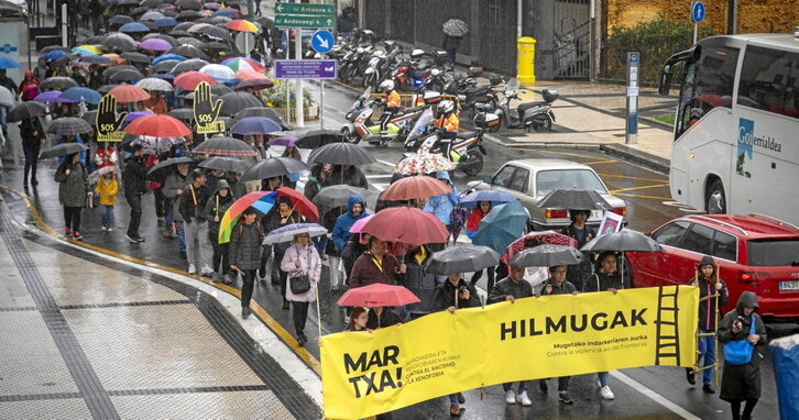 Arrazakeria eta xenofobiaren kontrako 26. martxa egin zuten atzo, “Hilmugak” lelopean eta 50 bat kolektibok babestuta. Antolatzaileek adierazi zutenez, mugen blindatzean oinarritzen den Europar Batasunaren migrazio politikak 2004tik gutxienez 46.000 pertsonaren heriotza eragin du; erdiak Mediterraneoan. Irundik Hendaiara pasatzen saiatzean Bidasoan bederatzi pertsona ito direla gogorarazi zuten. Bidasokoak eta Tarajal edo Melillako sarraskiak politika kriminal horren tragediaren dimentsioan galtzen dira. Eta arduradunak, zigorgabe. Onartezina da.