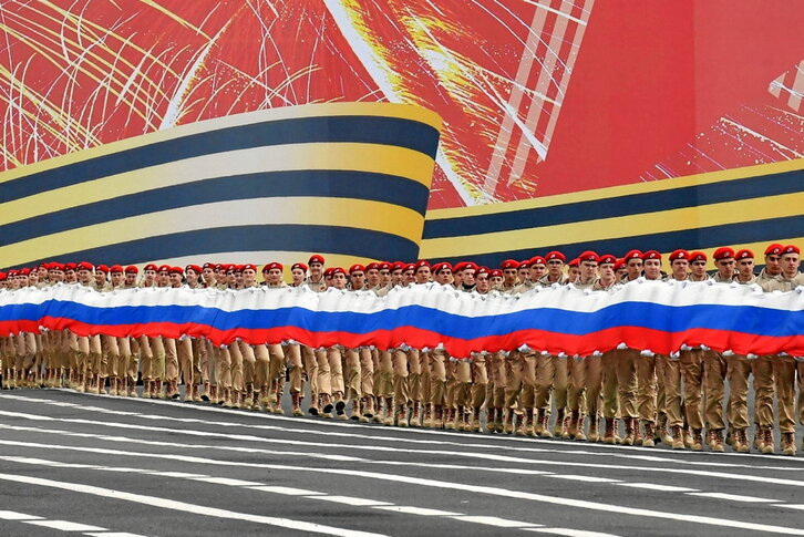 Bihar 78 urte, tropa sobietarrek Alemania naziaren baldintzarik gabeko errendizioa, erabateko kapitulazioa, lortu eta Berlingo Reichstag-en bandera gorria zabaldu zuten; hala, Europan II. Mundu Gerrari amaiera eman zioten. Nazien porrotean beren ekarpena izan zen orotan handiena. 27 milioi sobietar herritar hil ziren, baina hamar soldadu nazitik zortzi sobietarrek hil zituzten. «Gerra Patriotiko Handian» egin zuten sakrifizio kolosala aitortzea funtsezkoa da gaurtik ospakizunetan den Errusia ulertzeko -argazkian San Petersburgoko ekitaldiak- .