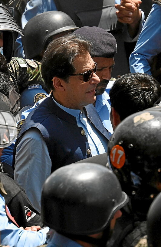 El protagonismo en Pakistán gira en torno al ex primer ministro Imran Khan: su destitución, sus llamamientos a las protestas, el atentado que sufrió en noviembre y su reciente detención... La forma en que se le detuvo, por una fuerza paramilitar que no responde ante las autoridades civiles y por un presunto delito que ni los ministros del Gobierno se atreven a nombrar, ha sido el último detonante.
