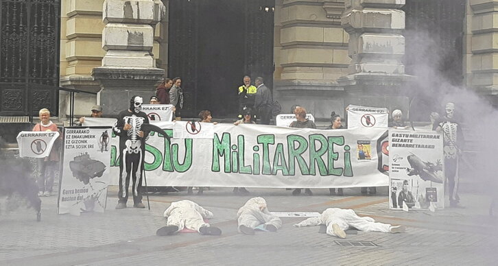Gerraren Kontrako Emakumeen Nazioarteko Egunaren karietara, Kakitzat koordinakunde antimilitaristak eta Argitan emakumeentzako aholkularitza-zentroak protesta egin zuten atzo, Bilbon, «beharrezkoak ez diren» gastu militarrak behar sozialetara eta, bereziki, «emakumeek egunero pairatzen dituzten» arazoetara bideratu daitezela exijitzeko. Ukrainako gerraren aurrean Europar Batasuneko estatuek hartutako jarrera gerrazalearekin gastu militarra izugarri handitu da, eta, aldiz, arazo sozial ugarik behar besteko inbertsiorik gabe jarraitzen dute.