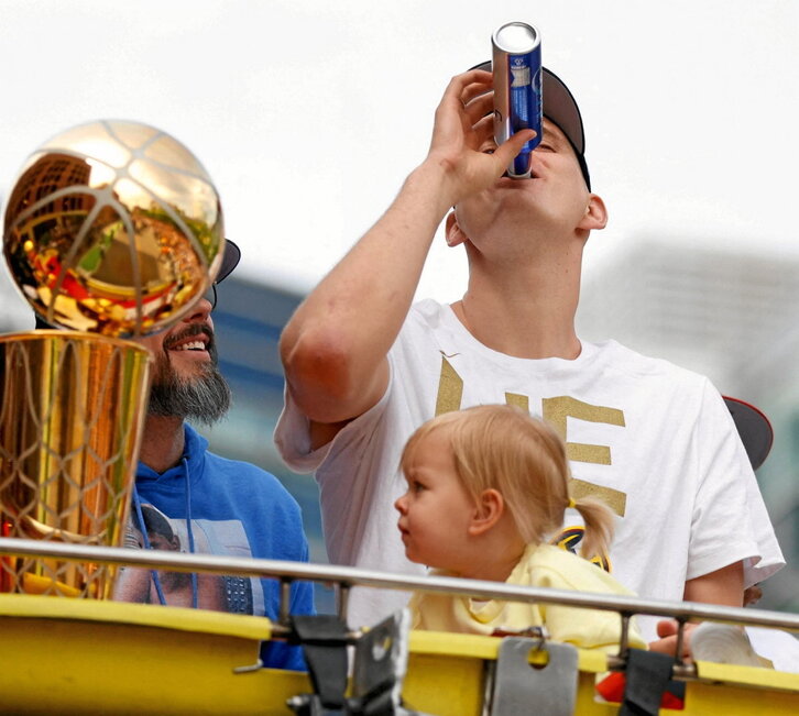 Nurkic “Bosniako Hartza” da: 2,11 metro, gihartsua, erreboteak harrapatzen iaioa... eta Jokic, berriz, gosaltzeko “burek” jan zalea -haragi xehez eta martorriz betetako masa kiribildua- eta bizpahiru litro Coca Cola edan zalea. Ingelesez ere... tamainan, eta Denverrekin egin zuen lehenengo aproban ia hitzik ere ez ei zuen egin taldekideekin.