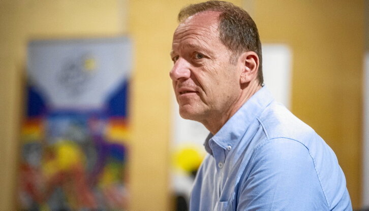 Christian Prudhomme atendió ayer a los medios vascos en la apertura de la sede del BEC para transmitir felicidad porque el Tour salga de Euskal Herria.
