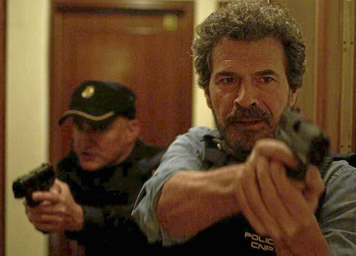 El madrileño Javier Elorrieta es un director que ha seguido la estela de Álvaro Sáenz de Heredia, es firmante de una serie de ficciones y largometrajes tendentes a repetir, de manera muy superficial y cañí, los preceptos del cine comercial estadounidense. Fruto de estos esfuerzos son una suma de productos de muy bajo calado que, si ya chirriaban en los ochenta y noventa, en la actualidad pueden ser vistos como una especie de arqueología pulp y casposa. Ejemplo claro de esta manera de entender el cine como algo trasnochado es este enloquecido thriller que se asemeja al camarote que imaginaron los Hermanos Marx en su “Hotel de los líos”. Tomando como referencia la novela de Félix García Hernán, “Delfines de plata” concentra su acción y tribulaciones en un hotel de lujo enclavado en Madrid. Un escenario en el que se dan cita una variopinta galería de personajes muy pobremente perfilados. Entre ellos destaca un inmigrante nigeriano que trabaja en el mencionado hotel, que se verá inmerso en un entramado inquietante relacionado con una célula de Boko Haram que está preparando una acción armada. En el mismo hotel, un ministro del interior encontró el lugar discreto que requería una relación sentimental y, en mitad de este embrollo, con torero incluído, un policía intentará poner orden a semejante desconcierto. Lastrada por un ritmo muy torpe, la película intenta eludir su inevitable naufragio mediante un encadenado de clichés y diálogos lapidarios que, en ciertas situaciones, provocan en el espectador una incómoda sonrisa. Detrás de la cámara, su director no oculta que su estilo pertenece a otra época y lo demuestra sirviéndose de recursos como el fundido a negro que corta una escena y que deriva en una elipsis para disfrazar la falta de recursos de un producto de tercera fila con demasiadas ínfulas y que no llega a ningún lado en concreto.