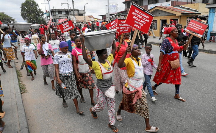 Ghanako Kongresu Nazional Demokratikoa oposizioko alderdiak kalera atera zituen atzo bere jarraitzaileak, Akkra hiriburuan, bizitzaren garestitzeagatik eta langabezia masiboagatik protesta egitera. Beste herrialde asko bezala, Ghana aberatsa da, kakao- eta urre-ekoizle handia da, eta gas- eta petrolio-erreserba handiak ditu, baina interes-tasen igoerarekin zorraren karga izugarri handitu, eta inflazioa kontrolik gabe hazten ari da, eta horrek herritar xumeak pobretu ditu. Sistema ekonomiko bidegabe baten beste biktima bat da.