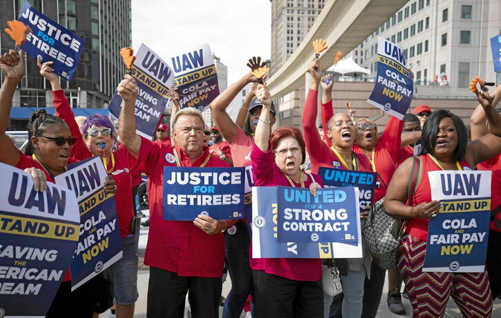 El sindicato United Auto Workers (UAW) lanzó hace un mes una huelga simultánea en las tres grandes empresas automovilísticas de EEUU. Dejó de lado la habitual estrategia de hacerlas consecutivas para forzar el acuerdo. Alrededor de 12.700 trabajadores de tres plantas de montaje están en huelga desde entonces. El 30 de septiembre, 7.000 más se unieron a la huelga.