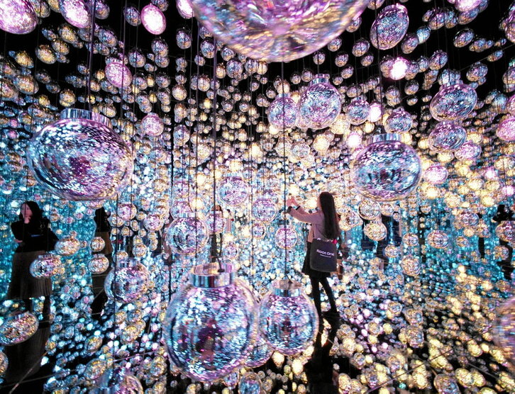 Bubble Universe y Megalith Crystal Formation son las dos nuevas obras del colectivo teamLab con las que experimenta en torno a la percepción del espacio-tiempo en el museo Borderless de Tokio. En Bubble Universe -en la imagen-, las esferas cambian de color cuando alguien se acerca a ellas y se da inicio a un proceso de transmisión de la luz a esferas cercanas, hasta el otro lado de la sala. Megalith Crystal Formation explora un concepto aún más abstracto, en este caso desde la oscuridad, en la que surgen retazos de luces en un ciclo continuo de vida y muerte con olas y flores.