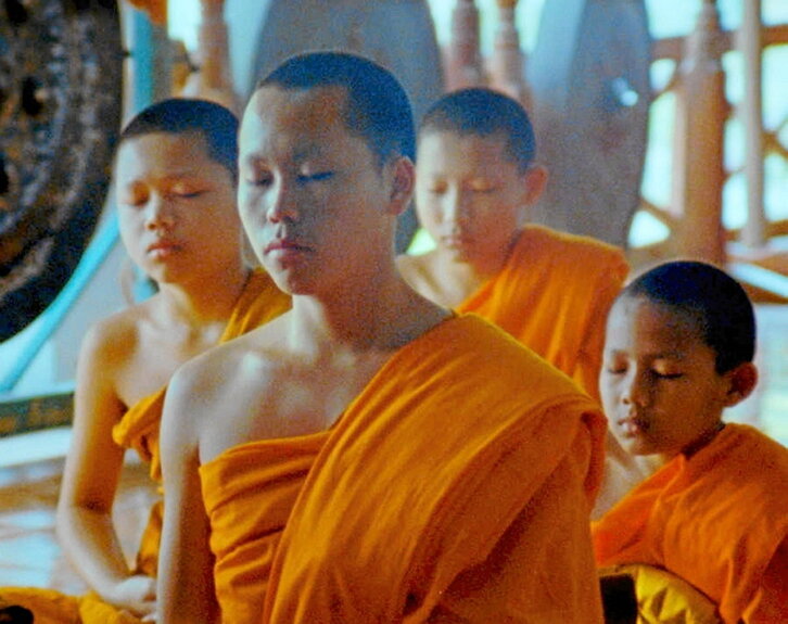 Samsara es el ciclo budista de muerte y reencarnación. Desde los templos de Laos, conviviendo con monjes adolescentes, el filme sigue a un alma en su tránsito de un cuerpo a otro a través del bardo. Las palabras del “Libro tibetano de los muertos” nos sirven de guía para no perdernos por el más allá. Un recorrido lumínico y sonoro que nos llevará a reencarnarnos en las playas de Zanzíbar, donde mujeres trabajan en granjas de algas.