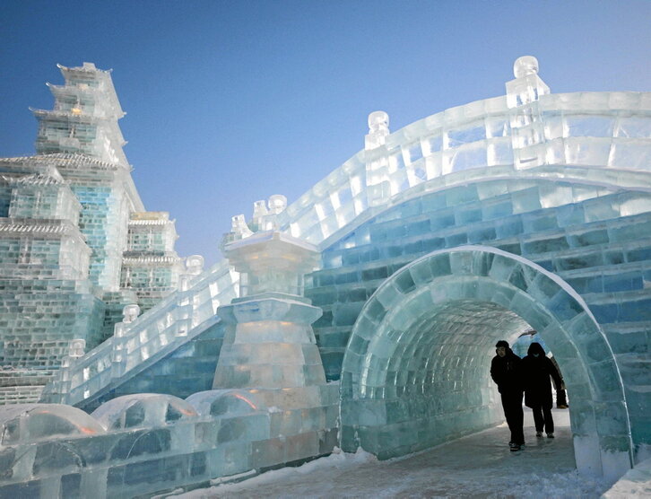 Atraídos por sus gélidas temperaturas y por su Festival de Hielo y Nieve, miles de visitantes llegan estos días a la ciudad china de Harbin. En su primera edición tras la pandemia, recomiendan llevar un gorro grueso, una bufanda de lana, guantes de «materiales de calidad», máscaras de terciopelo y calcetines adecuados para transitar a lo largo de los 810.000 metros cuadrados en los que se reparten enormes estructuras de hielo. Cerca de 10.000 trabajadores se turnaron las 24 horas del día durante 15 jornadas para montarlas, soportando temperaturas de hasta 20 grados bajo cero.