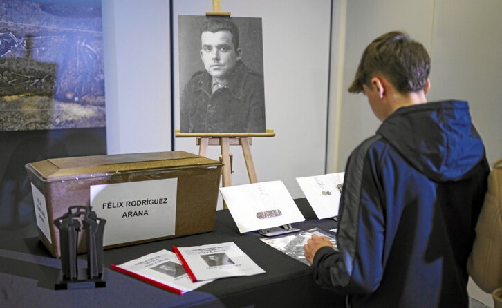 86 urteko Maria Victoria Rodriguezek aitaren gorpuzkiak jaso zituen atzo. Gogora Institutuak jakinarazi zuenez, Felix Rodriguez Arana Tolosan jaioa baina Pasaiako bizilaguna zen. UGT sindikatuko afiliatua, Espainiako gerra zibilean Guipuzcoa eta Karl Liebknecht batailoietan borrokatu zen. 1937ko ekainaren 19an hil zela jakina izan arren, gerrako desagertua zen. Familiak haren gorpua jasotzeko 86 urte eta erdi zain eman izana lotsagarria da, salatzekoa. Estatu mailan, frankismoak hildako dozenaka mila pertsonak jarraitzen dute desagertuta.