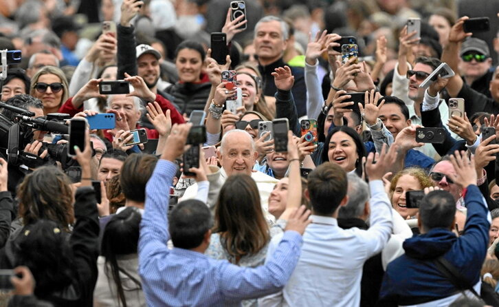 La plaza de San Pedro en el Vaticano se llenó ayer de fieles para escuchar la homilía del papa Francisco. En su bendición urbi et orbi del Domingo de Resurrección, llamó a no permitir que «los vientos de la guerra soplen cada vez más fuerte sobre Europa y sobre el Mediterráneo», en alusión a los conflictos en Palestina y en Ucrania. La Iglesia católica ha mediado para la liberación de rehenes en este último conflicto, por ahora sin éxito. En la época de los selfies, junto a la geopolítica y la oración, no faltó la veneración por el ídolo.