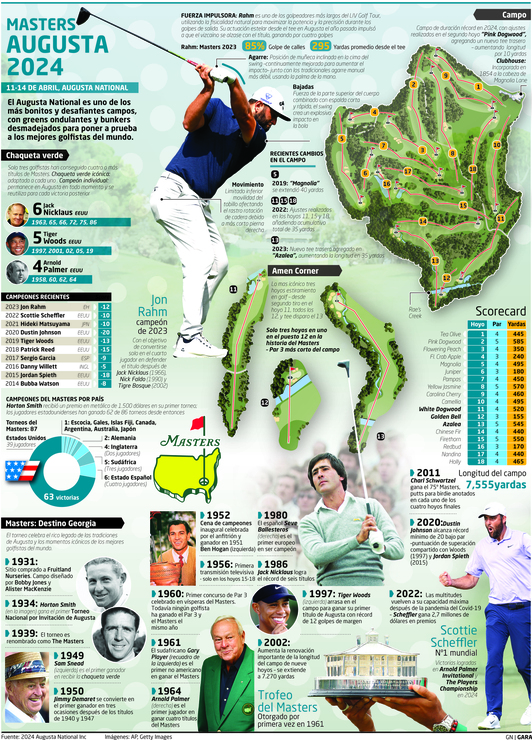 La única forma de retener la icónica chaqueta verde de campeón es firmar un doblete en Augusta. Rahm tiene clara la magnitud del desafío y el nivel de sus rivales, que van de Scottie Scheffler -ganador en 2022- y el norirlandés Rory McIlroy -que pelea por completar el grand slam en su carrera-, a Brooks Koepka, Jordan Spieth y el japonés Ideki Matsuyama. Tampoco se podría descartar a Tiger Woods que, a sus 48 años, regresa a este campo por 29º año tras estrenarse en 1995 y ganar cinco títulos desde entonces.
