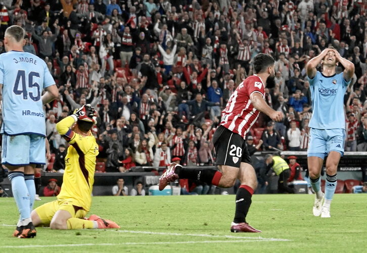 San Mamés festejó con alegría el empate rescatado en el descuento ante Osasuna. Un punto que sirve de poco para pelear por la Champions, pero demuestra que el equipo no ha bajado los brazos. Si el Atlético se impone al Celta, se alejará a ocho puntos de distancia a falta de tres jornadas. Por su parte, el conjunto rojillo necesitaba recuperar la autoestima después de encadenar cuatro derrotas y ofreció una buena imagen.