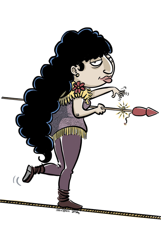 El funambulismo fue mi ganapán y me fue bien hasta que la cosa se torció. Haciendo acrobacias en Ondarru con una silla a 15 metros del suelo caí al vacío y me rompí varios huesos. Estuve retirada durante cuatro años. El cabrón de mi marido se gastó todo el dinero que había ganado en el alambre y me jodió la vida, por lo que, segundo deseo imposible, me gustaría encender la mecha de otro cohete más grande y mandarlo lejos, a la luna, pero a la cara oculta, para no verlo más.