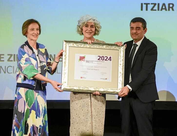 Bilboko Alondegian jaso zuen atzo Itziar Laka ikertzaileak Eusko Ikaskuntza-Laboral Kutxa saria, elebitasunaren ikerkuntzan egindako lan eskergagatik. Saria jasotzean, Lakak esker oneko hitzak eskaini zizkien berak zuzentzen duen Gogo Elebiduna ikertaldeko kideei, eta gure gizartean euskararen, hizkuntzaren eta elebitasunaren gaineko ikerketak estrategikoa izan behar duela aldarrikatu zuen.Bestetik, Maite Aizpuruak eta Garazi Navasek jaso zuten gazteen sorkuntza edo ikerketa proiektuak babesteko ematen den saria.