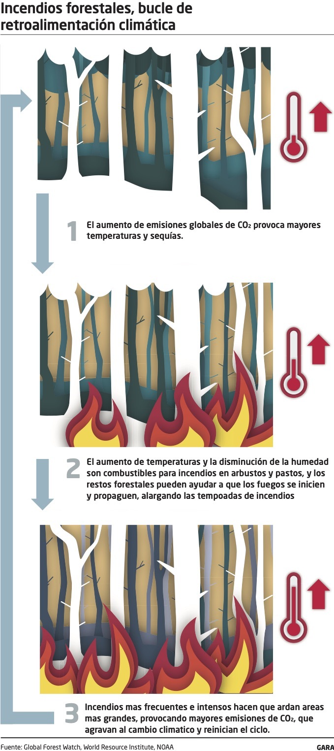 Se trata del ciclo vicioso impulsado por el cambio climático: el aumento de las temperaturas y los fenómenos meteorológicos extremos están afectando al funcionamiento de los reservorios naturales de carbono. «Las plantas ahora crecen en condiciones mucho más adversas. Si reciben menos agua y se exponen a temperaturas más altas, su capacidad para absorber carbono se reduce», explica a GARA Iker Aranjuelo, Doctor en Biología Ambiental e investigador del Instituto de Agrobiotecnología de Nafarroa.
