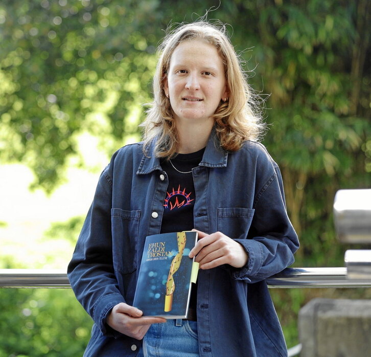 “Ehun zaldi trostan” (Elkar) ipuin-liburua argitaratu berri du Ainhoa Urienek (Abadiño, 1995). Dikotomiak zalantzan jartzera datorren lana da, eta dikotomien arteko jolas eta hibridazioaren erakusgarri aldi berean. Eleberri trazak dituen ipuin bilduma.