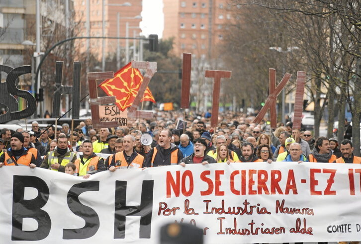 Manifestación contra el cierre de BSH el diciembre pasado en Iruñea.