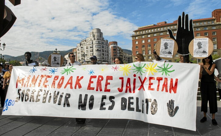 Urtero bezala, Bilboko Aste Nagusia hurbildu ahala, Udaltzaingoak kaleko saltzaileen aurkako presioa areagotu du. Haien atxiloketak gero eta ugariagoak izan dira egunotan, batzuk bortitz samarrak eta daramatzaten salgaiak kenduz. 2019ko irudi honek erakusten duen bezala, saltzaile horiekiko elkartasuna ez da falta izaten. Manteroekin Bat plataformak mobilizazio batera deitu du datorren astelehenerako, kaleko saltzaileen aurkako polizia-eraso arrazisten amaiera aldarrikatzeko, Zamudioko Atean, 18.00etan.