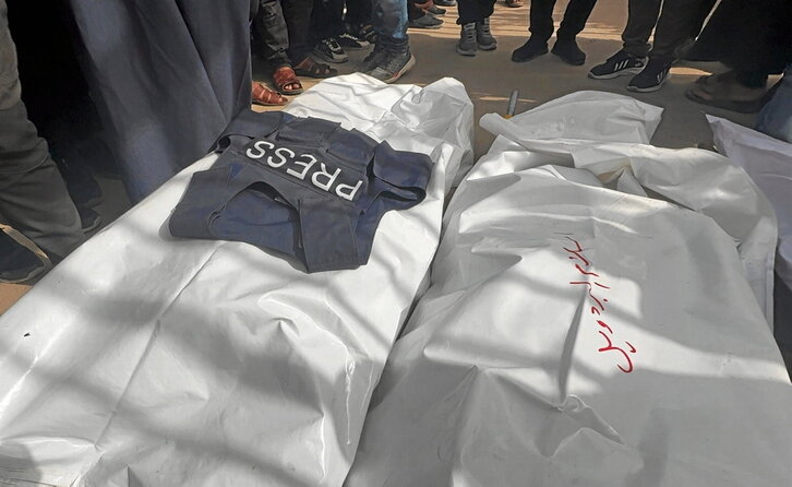 Tras el ataque israelí al hospital Al-Nasser de Gaza, en el que mataron a más de veinte personas, entre ellas a cinco periodistas, profesionales de la comunicación de Nafarroa han convocado una concentración mañana. En un manifiesto, recuerdan que «en un contexto donde Israel bloquea el acceso a la prensa internacional a Gaza, los periodistas locales se han convertido en la única ventana al mundo sobre lo que allí ocurre, pagando con su vida por ejercer su labor informativa».