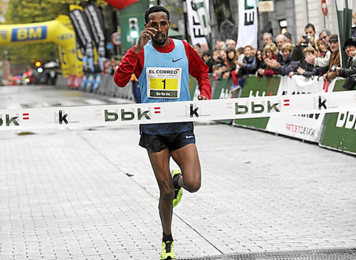 El eritreo Tsegay hizo buenos los pronósticos por las calles de Bilbo, hasta la Gran Vía donde se ubicó la meta. El vencedor remató la carrera en 45 minutos 10 segundos. Casi un minuto después cruzó la meta El Bannouri que, con anterioridad, dio alcance a Mohamed Blal, le superó y liquidó los casi 16 kilómetros con 12 segundos de ventaja sobre su compatriota.
