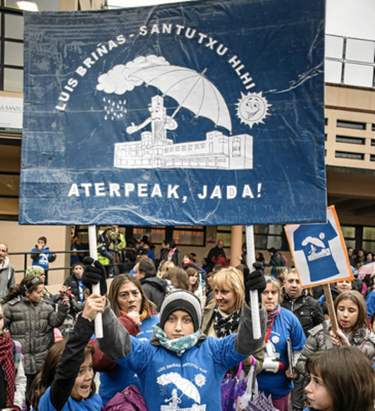 El colegio Luis Briñas se manifiesta por Santutxu para pedir un patio cubierto
