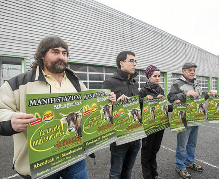 Los sindicatos ELA, LAB, CCOO y ESK, además del agroganadero EHNE, los concejales de Bildu en el Ayuntamiento de Abadiño, la organización juvenil Ernai y la Asociación de Comerciantes de Durangaldea (+ Dendak) han convocado una manifestación para el próximo día 14 de diciembre en contra de la instalación en esta localidad de sendos establecimientos de las multinacionales estadounidenses McDonald's y Burger King.
