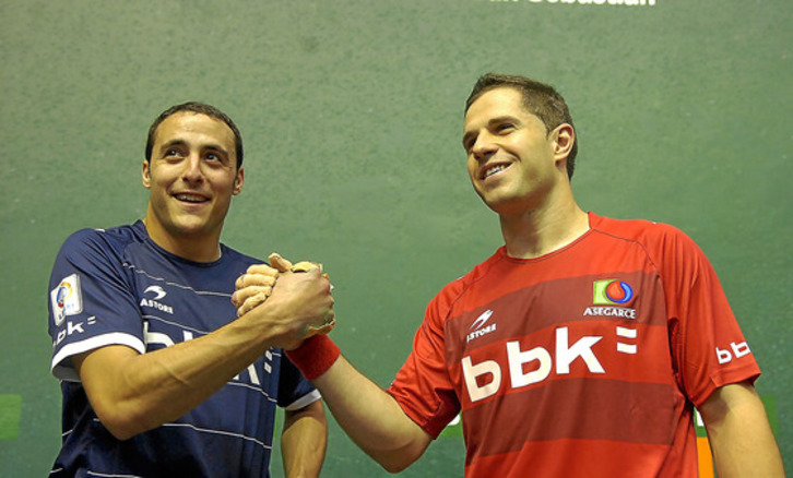 Aimar Olaizolaren eta Juan Martinez de Irujoren arteko neurketen historia luzea da jada, eta horren onak direnez biak, baita elkarren aurka jokatutako finalena ere. Orain arte bederatzi final nagusi jokatu dituzte batak bestearen aurka, horietatik bost irabazi ditu goizuetarrak -azken hirurak segidan- eta lau, aldiz, iberotarrak. Final borrokatuak izan dira batzuk, argi xamar erabaki direnak besteak, baina denek eduki dute berezitasunen bat, etorkizunean ere gogoratzea merezi duen xehetasunen bat. Datozen lerroetan horietako batzuk gogoratuko ditugu, bi protagonistek dituzten oroitzapenak eta egunean bertan esandakoak ere berreskuratuz. Pilotariek frontoian idatzitako historia da, baina baita zaleoi bizitzea tokatu zaiguna ere.