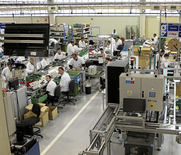 La planta de Talleres Protegidos Gureak en el polígono Apatta Belabieta (pegado a Tolosa, pero en Ibarra realmente) es un espacio amplio y diáfano en el que docenas de trabajadores se afanan en las mesas y cadenas de montaje. El ritmo de trabajo es el de cualquier empresa de este tipo; la pieza a realizar entra desnuda en la cadena, cada operario le añade componentes, el trabajo se completa, la pieza pasa el control de calidad y finalmente se envasa y termina en la caja que se cargará en el camión. ¿Margen de error? Cero. El cliente no lo admite. Los paneles luminosos adheridos a las columnas indican en tiempo real el número de faros cableados y si alguno de ellos ha presentado algún error que haya sido necesario subsanar: a estas horas de la mañana, la primera cifra es 295 y la segunda, 0.