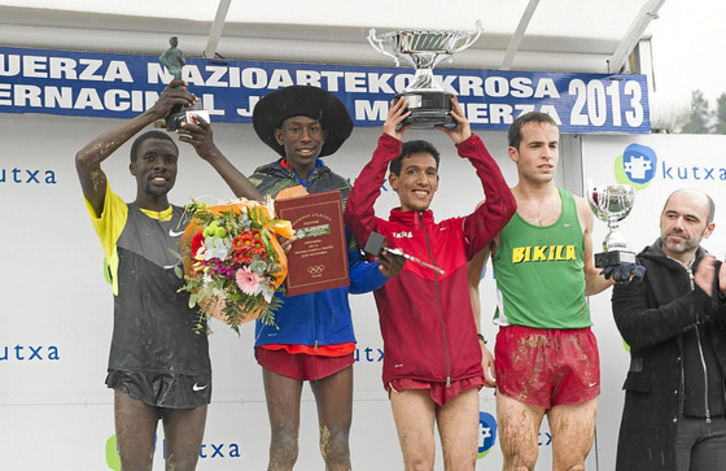 La presencia de Conseslus Kipruto y Emmanuel Bett sugiere la repetición del duelo keniata de 2013 aunque esta vez aderezado por Timothy Toroitich, el ugandés que quedó quinto en el último Mundial de Bydgoszcz y segundo el pasado domingo en Zornotza, justo por delante de Lamdassem. Tanto Toroitich como Bett se han prodigado bastante esta temporada. Ambos coincidieron en Atapuerca y Alcobendas, siempre con Bett por delante. Junto a Linet Masai llevan unos días en Elgoibar, donde se les ha visto entrenar, pasear, ir de compras y atender los compromisos asistiendo al acto de presentación del cross y visitando el instituto para charlar con los alumnos. Ayer llegó Kipruto, que defenderá mañana su txapela en el circuito de Mintxeta. Hace un año aterrizó como un obstaculista prometedor precedido por sus títulos de campeón mundial cadete y júnior y ahora es una estrella tras confirmarse en un verano tan productivo como agradecido.