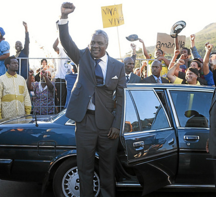 Pero no sería justo centrar todo el mérito de la película exclusivamente en su actor principal y olvidarse de Naomie Harris, que está igualmente convincente como Winnie Mandela. Además de la química necesaria en toda pareja histórica, ambos conducen la tensión interna del relato y del pertinente debate entre el pensamiento y la acción. La relación entre el abogado y la trabajadora social muestra una evolución dentro del CNA, con ella volviéndose más radical, a pesar de la mayor brevedad de su paso por prisión.