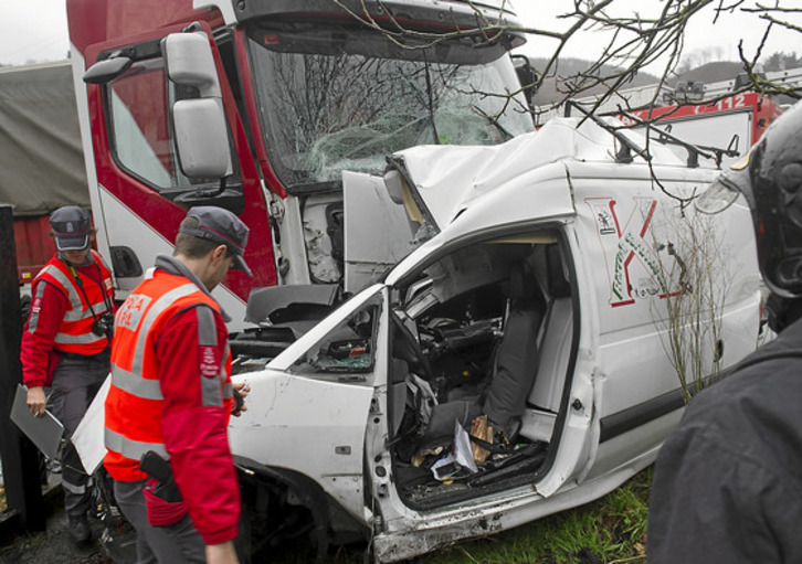 Los fallecidos eran hermanos y residían en Burlata. El suceso se registró a las 15.14 y consistió en un choque frontal de la furgoneta, que circulaba en dirección a Iruñea, contra el camión, que se dirigía a Irun. El conductor del camión no resultó herido.