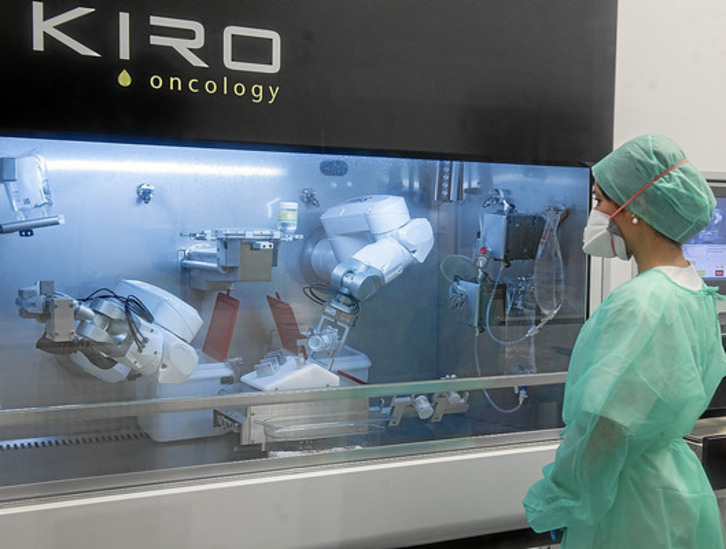 De la aplicación de conocimientos de ingeniería a la salud, nace Kiro Oncology, el robot que prepara dosis individuales de quimioterapia en Onkologikoa. Destacan la «gran ventaja de seguridad» que supone.