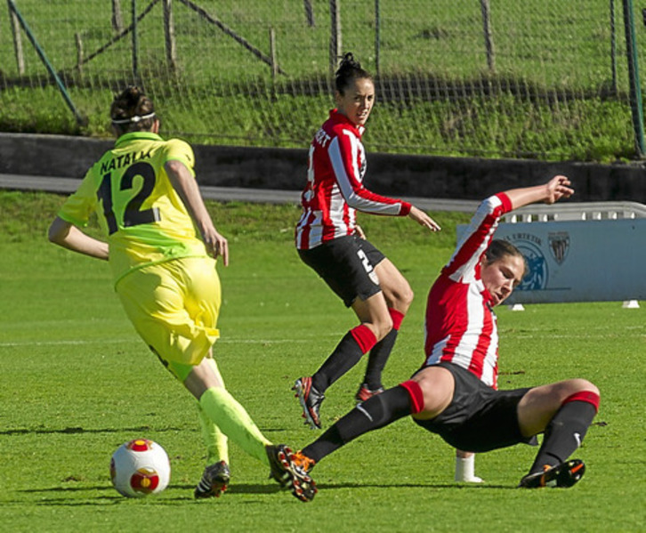 Se sentía más cómodo el Athletic -aunque el estado del terreno de juego, castigado por las intensas lluvias de la víspera y el partido que habían disputado Bilbao Athletic y Sanse, no favorecía su juego-, que bien pudo ampliar distancias a la media hora, con un balón que Olabarrieta, sola ante Alicia, envió fuera. No se mostró tan dadivoso el Rayo, que recortaba la renta local a diez del descanso.