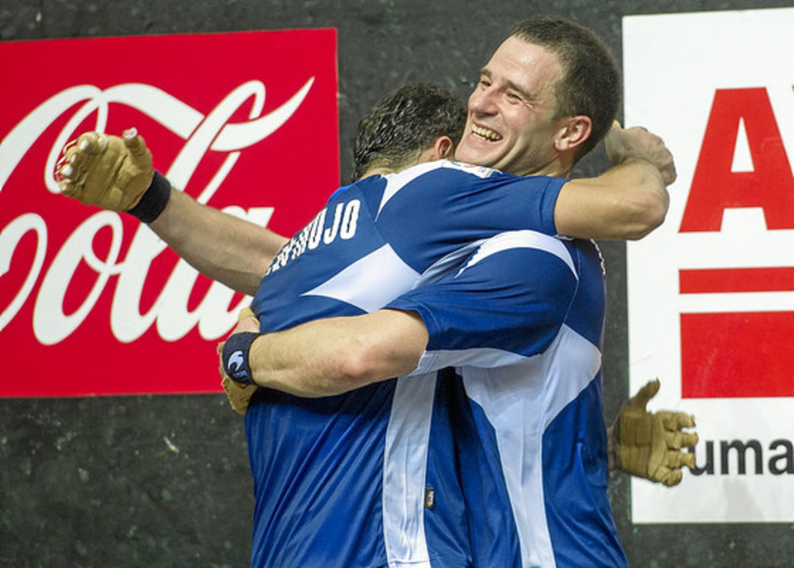 Exultante. Abel Barriola era ayer el hombre más feliz del mundo. Es más. Sus propias palabras lo delataban. «Estoy en paz con la pelota, no tengo ya ninguna deuda con ella. Si mañana acaba mi carrera estaré satisfecho». Feliz. Eufórico. Como un niño con txapela nueva. Sí, la de parejas. «Hay muchos pelotaris que trabajan mucho durante años y no tienen premio. Yo he tenido suerte de tener los tres campeonatos. Tengo 35 años y esto es el premio a muchos años de trabajo. Es una satisfacción inexplicable. Todo el trabajo de una carrera plasmado en un partido y una victoria». No cabía en sí. A su lado, más serio, Juan Martínez de Irujo. «No esperaba ganar la txapela ni loco», llegó a reconocer, no se sabe si dando continuidad a ese papel de víctima del que a veces, ante los grandes partidos, se disfrazan los pelotaris. Lo cierto es que la pareja navarra entró bien en el partido y acabó mejor, a pesar de que Barriola apuntillara que «no cuentan los méritos, sino llegar al cartón 22».