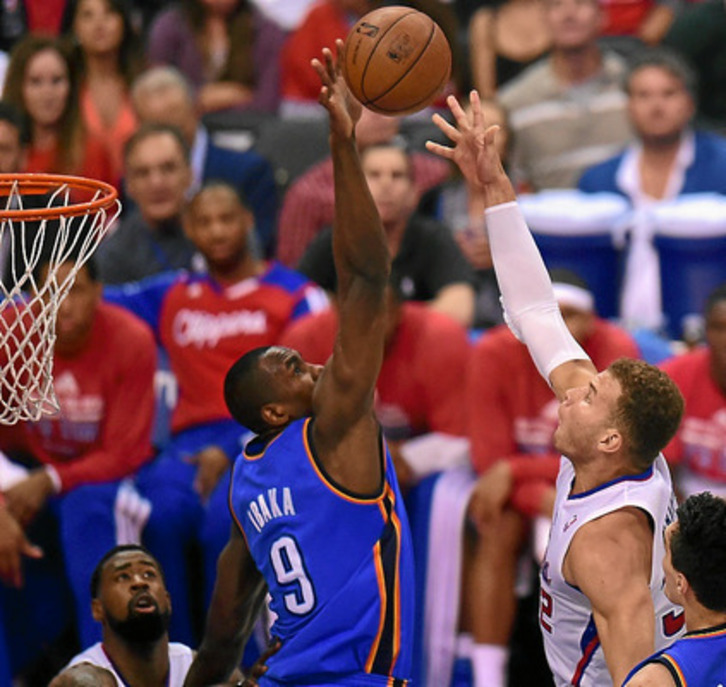 LOS ANGELES CLIPPERS (1) - OKLAHOMA CITY THUNDER (2) (112-118). «Lo que me encanta de Ibaka es lo competitivo que es. Pese a cometer personales, siempre ofrece al equipo cada gramo de energía de su cuerpo». El entrenador Scott Brooks, muy criticado por limitar su juego a la inspiración de Westbrook y Durant, realizaba estas declaraciones tras batir a los Clippers en el Staples Center. Si sus primeros espadas sumaban 59 puntos, el hispano-congoleño le añadía 20 -con 9 de 10 en tiros-, y pese a tener que «tragar» los 34 tantos de Blake Griffin, supo parar a la estrella interior angelina en los compases finales.