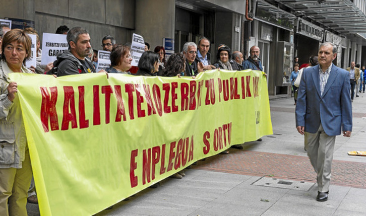 Loreto Cabo, representante de LAB en la Administración de Justicia, explicó ayer a GARA que la concentración de delegados sindicales ante la sede del Gobierno autonómico en Gran Vía de Bilbo reclama el fin de los recortes en el empleo público y, por el contrario, impulsar el empleo de calidad.