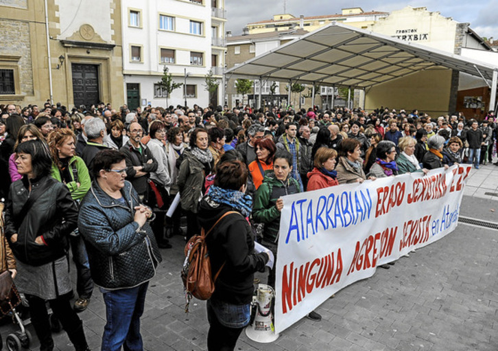 Convocados por el movimiento feminista de Atarrabia, ciudadanos y ciudadanas se concentraron ayer por la tarde frente al Ayuntamiento de la localidad en repulsa de la agresión sexual que sufrió una menor la madrugada del domingo.