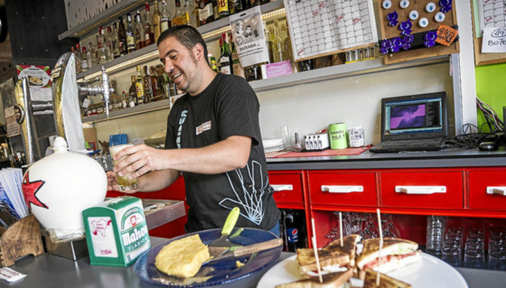 En su establecimiento es la cerveza la estrella. «Aquí, tiramos cañas y zuritos como si fuera agua. También se sirven txupitos que han ido ocupando el sitio que antes tenían los combinados», confiesa. La crisis se ha notado en el descenso en el número de combinados, aunque siempre hay quien en fiestas los toma. Ellos, por ejemplo, no se tienen que preocupar de la cocina porque no tenían espacio para ella. «Era elegir entre cocina o almacén», rememora.