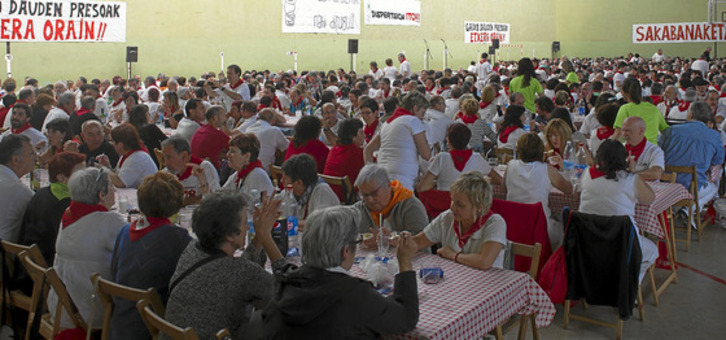 Horietatik asko eta asko Berriozarren elkartu ziren atzo, urtero sanferminen testuinguruan egiten den herri bazkarian. Horien artean, nola ez, Estrasburgoko Auzitegiaren aginduz askatu zituzten lagunak zeuden, guztira 200 urte baino gehiago kartzelan legearen kontra eduki zituzten horiek, hain zuzen ere.