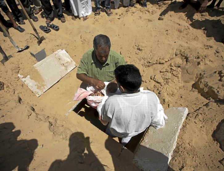 Las bombas israelíes seguían ayer destruyendo edificios en la Franja de Gaza y sumando muertos a la lista de víctimas, casi todas civiles, de la ofensiva militar «Borde Protector». Tal Aviv insistió en justificar los ataques contra viviendas familiares palestinas y la muerte de civiles al señalar que «Hamas se esconde detrás de ellos», pero la organización israelí Betselem recordó que aun siendo residencias de milicianos son objetivos «ilegítimos» y su ataque viola la legislación internacional.