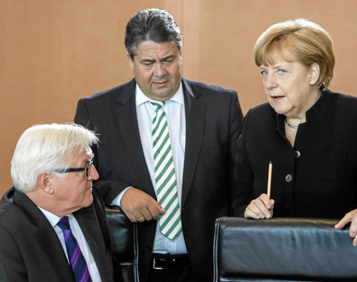 Con tal fin mantuvieron un encuentro los dos presidentes del Linke, Katja Kipping y Bernd Riexinger, con su homólogo del SPD, el vicecanciller Sigmar Gabriel. La reunión tuvo lugar a puerta cerrada, pero Merkel estaba al tanto de lo que hizo su socio. Aunque más importante fue lo que dijo el lugarteniente del grupo parlamentario del Linke, Dietmar Bartsch, a la prensa. Según él, una coalición con el SPD requiere un ambiente anti-Merkel, soluciones para los problemas sociales y alianzas políticas de las tres formaciones en municipios y länder. «Por la política exterior no fracasaría ninguna coalición», añadió el político que se inclina más hacia posiciones socialdemócratas que a socialistas. Kipping definió como condiciones para una coalición una subida de los impuestos «para ricos y trusts», un programa contra la pobreza en la vejez y una «pacífica política exterior». En otoño, en Turingia se verá si el SPD está dispuesto a dar su brazo a torcer para que el Linke pueda gobernar su primer land desde la caída del Muro.