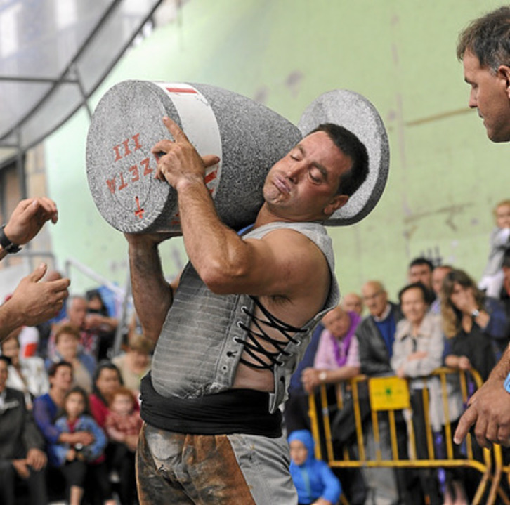 125 kiloko kopa, 112,5 kiloko kubikoa eta 100 kiloko bola erabili zituen bakoitzak, hiruna minutuko txandetan, eta emozioa ikaragarria izan zen. Kopari 29 jasoaldi eman zizkion Izeta III.ak, eta bat gutxiago Ostolatzak. Kubikoarekin berdinduta geratu ziren bi harri-jasotzaileak, bakoitzak 19 jasoaldi lortu baitzituen. Azkenik, bolarekin ere parean geratu ziren, bakoitzak 26 aldiz berdindu baitzuen harria bizkarraren gainean.