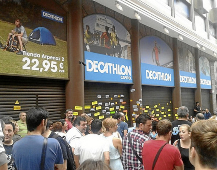 Los cuatro sindicatos más representativos del sector, ELA, LAB, CCOO y UGT, habían convocado desde primeras horas de la mañana de ayer sendas concentraciones de trabajadores del comercio ante los centros de la firma Decathlon en la CAV (en Nafarroa ayer era laborable) para protestar por la decisión de la empresa de abrirlos en un día festivo. En la CAV, la ley permite la apertura de ocho festivos al año, si bien el sector comercial ha venido optando por no abrir los días de fiesta.