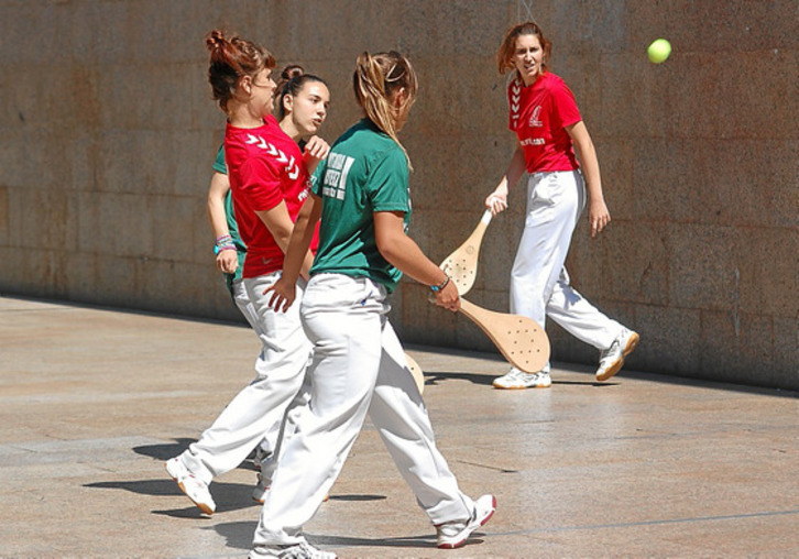 Nagore e Ixone Martín se llevaron el Torneo Green Capital de pala femenina tras derrotar en la final a Ibáñez y Landaluze por un abultado 20-6, en un abarrotado frontón de los Fueros.