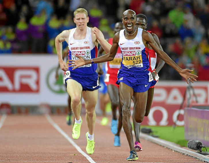 Mo Farah sí consiguió el primero de sus dos objetivos en un 10.000 muy británico, puesto que la plata fue para Andy Vernon. El inglés busca su cuarto doblete -tras los conseguidos en el Europeo de Barcelona'2010, los Juegos Olímpicos de Londres'2012 y el Mundial de Moscú'2013-, pero una temporada con algún desmayo, alguna hospitalización y poca competición había sembrado dudas.