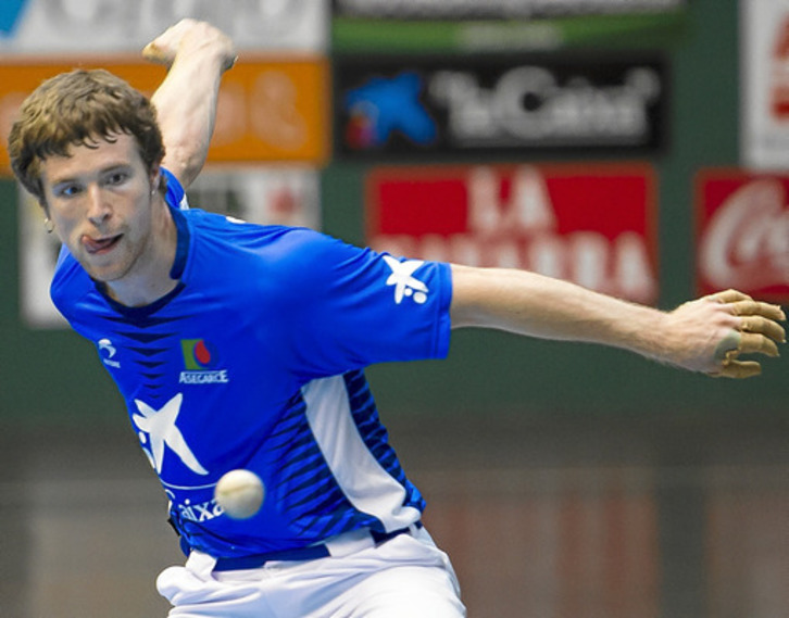 La renuncia de Iker Arretxe, su especialista para las luchas individuales en este tipo de desafíos, trastocó los planes de los técnicos de Asegarce, que llamaron para el acotado a un Ekaitz Saralegi que llegó con dudas en sus manos y el ilusionante derbi de amezketarras de mañana en el Larrunarri en el horizonte. Le tocó medirse con un Jon Jaunarena que parece haber dejado atrás su bache de juego, se presentaba con cuatro victorias en los últimos cinco partidos, y el de Leitza impuso su mayor pegada por 13-22. Cada uno con su estilo, el duelo tuvo un comienzo bastante igualado, en el que el guipuzcoano llegó a adelantarse 12-10. Sin embargo, con una pelota viva, el de Leitza comenzó a imprimir velocidad al juego, sobre todo de besagain de zurda y movió a su rival de lado a lado en un partido de 221 pelotazos en el que el de Aspe terminó hasta siete tantos de dos paredes.