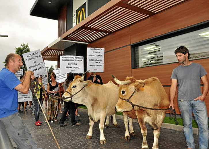 Noizean behin ekintzak egiten dituzte eta horien isla dira euren webgunean argitaratzen dituzten irudi eta testuak. Deigarrienetako bat McDonald's janari lasterreko katearen aurka egindakoa da: pertsona talde bat Abadiñoko jatetxera gerturatu zen behi eta guzti euren mezuak helarazteko, «Gurea da etorkizuna, ez kontsumitu zabor janik», «Kontsumitu bertoko baserrietako okela. Hiltegia behar dugu», «McDonald's ez zara ongietorria. Zabor janaririk eta zabor lanposturik ez». Honakoa EHNEk garatutako protesta bat izan zen.